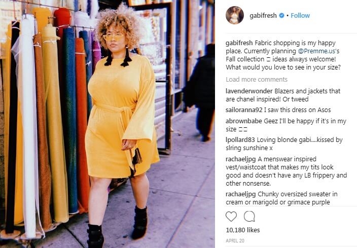 基本的に、プラスサイズのアパレルを宣伝しようとしているブランドの場合は、ボディポジティブを宣伝するモデルが必要です。 ここのプレムとガビのように。