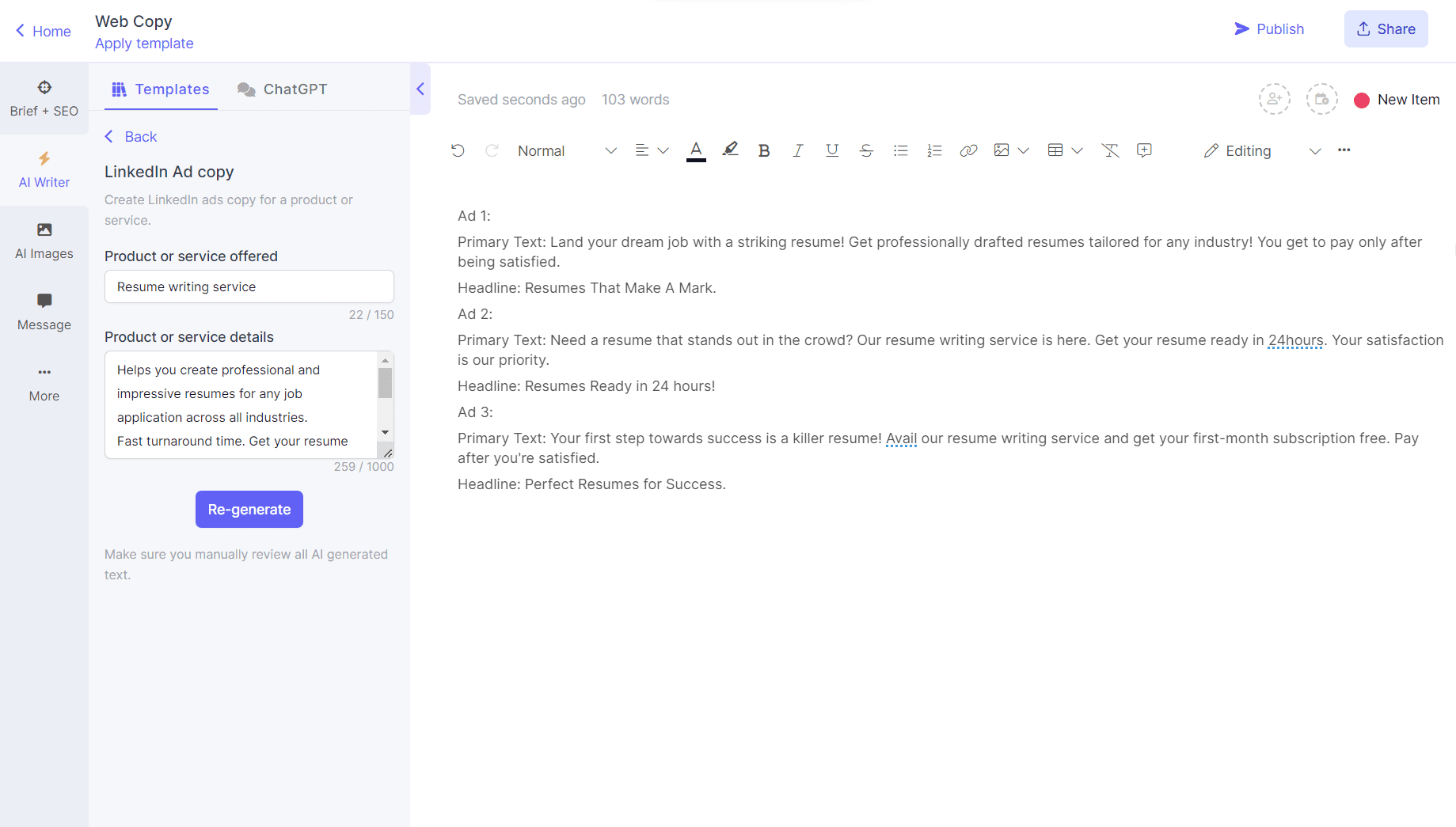 AI Ad Generator を効果的に使用するための私たちのお気に入りのヒントは次のとおりです。