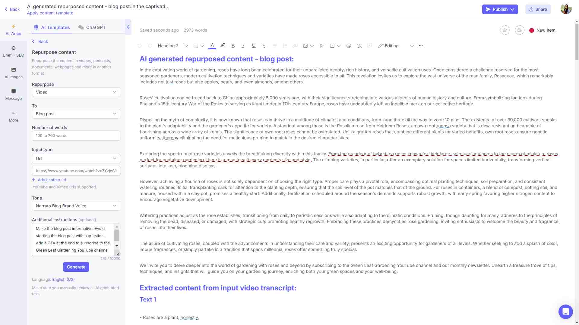 Narrato での AI ビデオ コンテンツ作成テンプレート