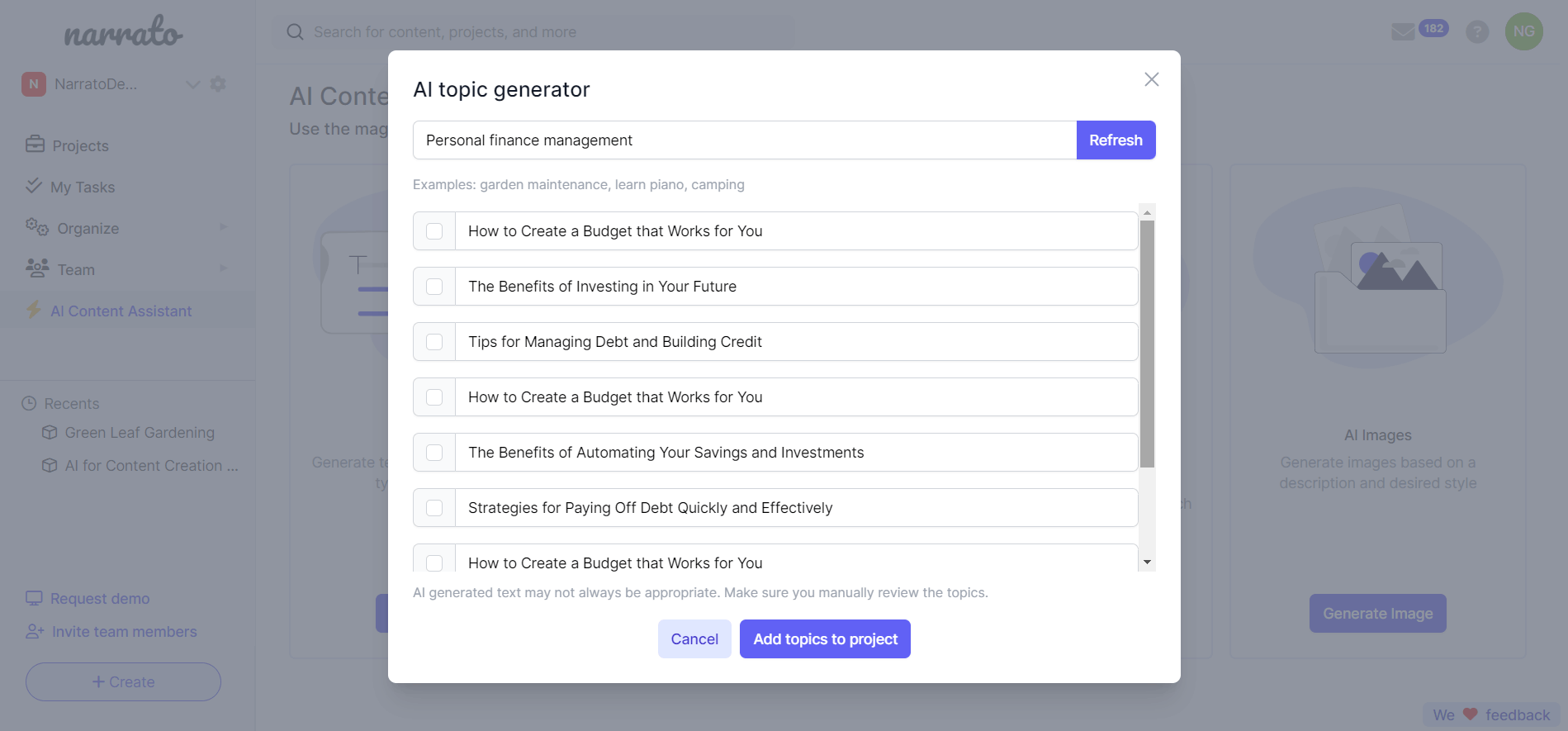 Narrato の AI トピック ジェネレーター
