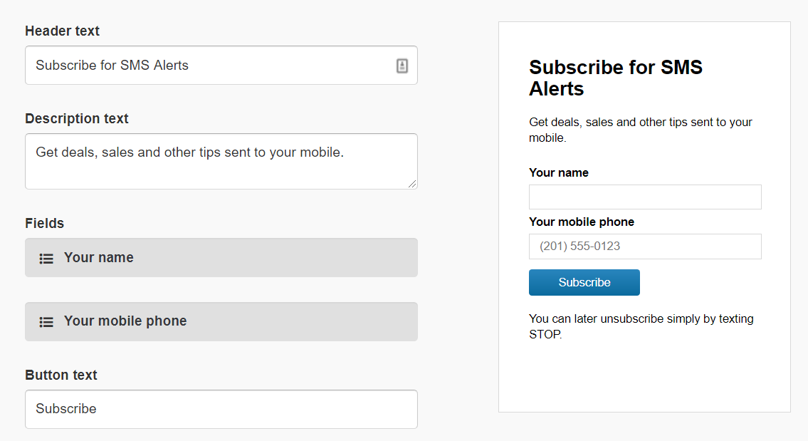 顧客の関与を維持する最善の方法は、顧客が受け取る更新の種類について透明性を保つことです。 また、STOP コマンドを使用して、人々が購読を簡単に解除できる方法を提供する必要があります。