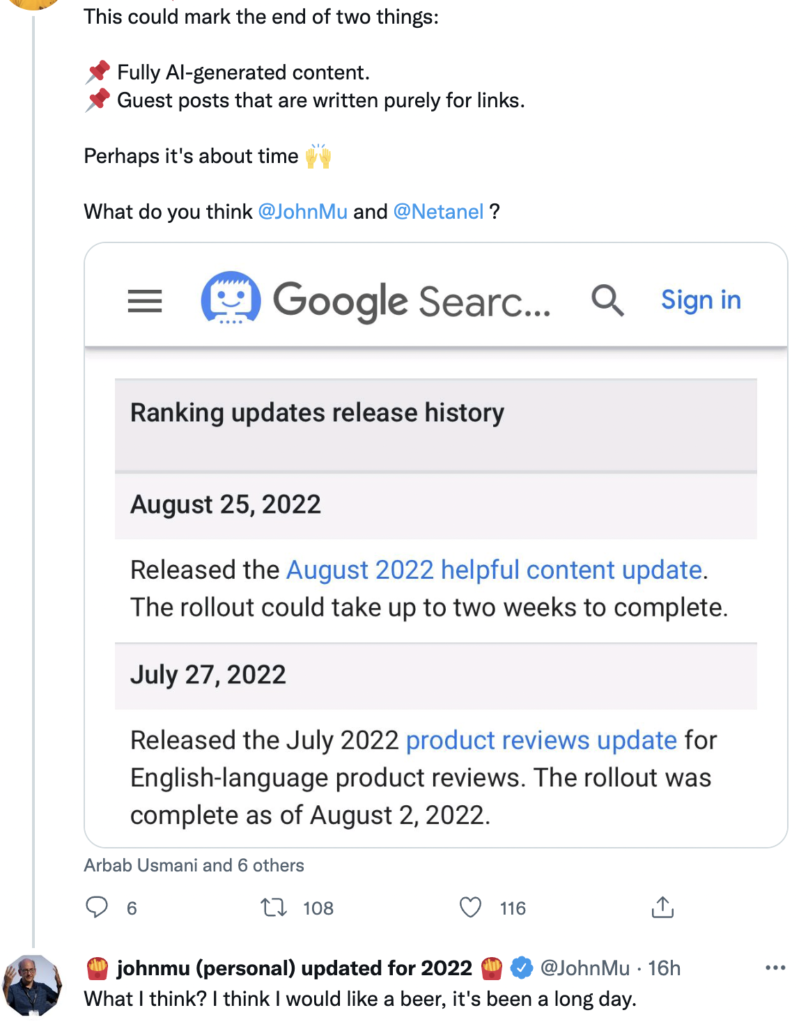 レベッカ:はい、そうです。 この更新により、誰もが細心の注意を払っています。 何も変わらないと思っている人は間違っていると思います。 コンテンツの作成方法だけでなく、Google によるコンテンツの評価方法も変わることがわかります。 そして、これらはこれまで見たことのない戦略です。