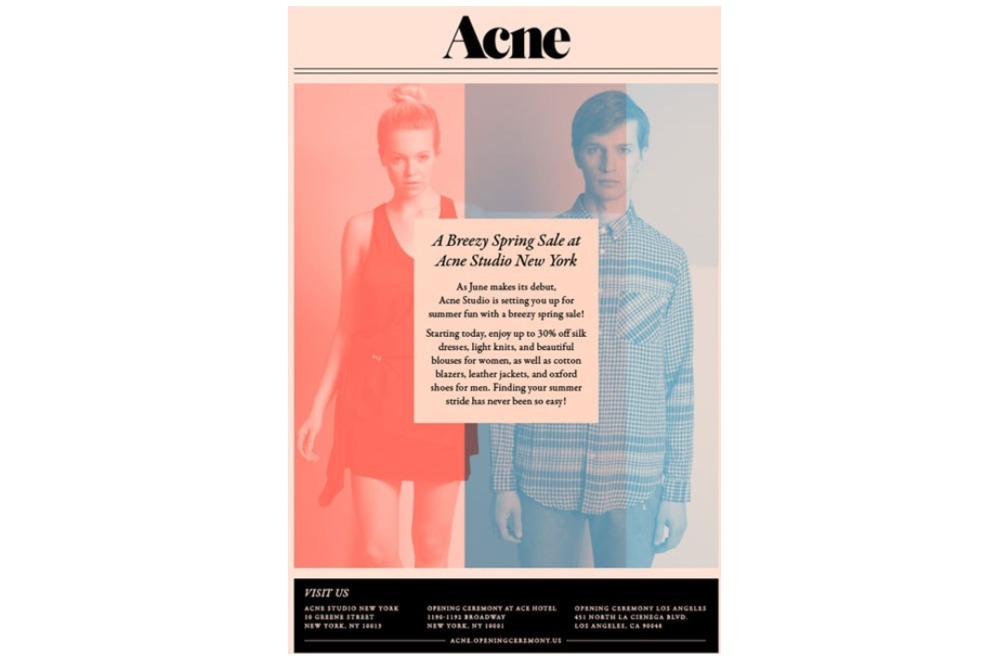 メールのデザインは、ブランドの個性と価値をアピールする機会でもあります。 ソーシャルメディアとは異なり、さまざまなタイポグラフィ、色、ビジュアルを試すための柔軟性がたくさんあります。