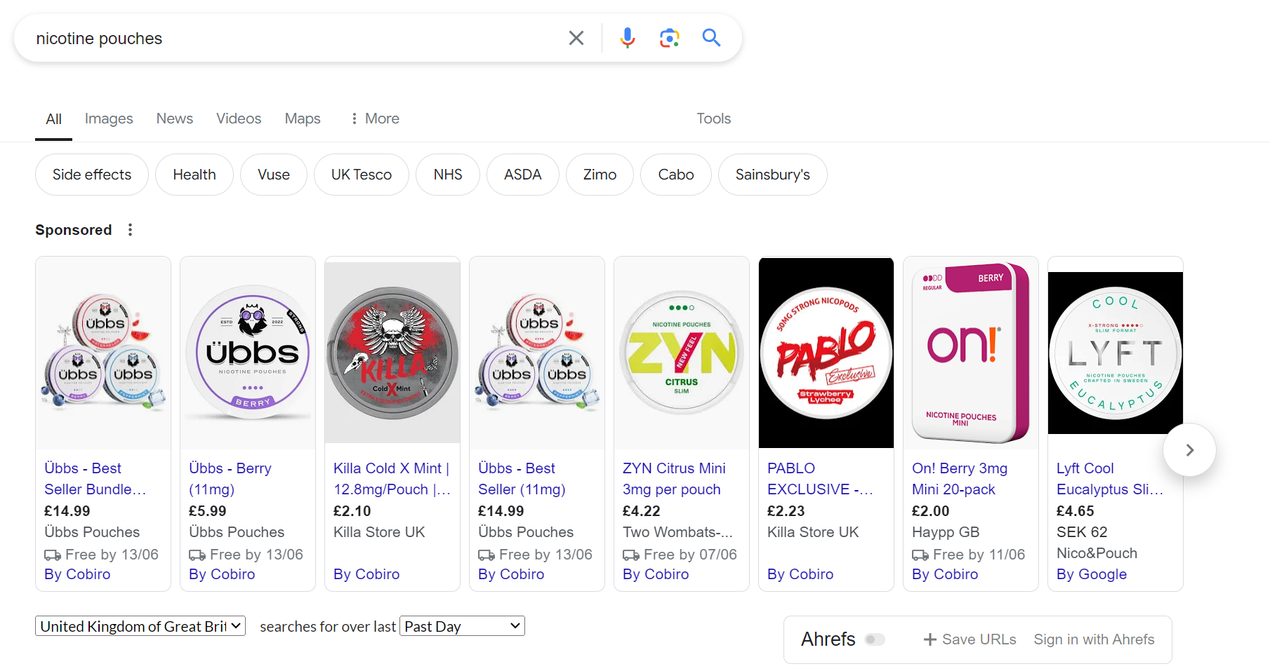 「ニコチン パウチ」の検索などの一部の分野では、「Google ショッピング」タブが存在しないことがすでに確認されており、再び競争が激化しています。