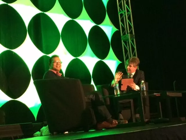 物事が実際に始まる前に、マット・カッツはダニー・サリバンとアミット・シンハルが座った後、ステージに駆け寄ります。 マットはグループセルフィーが欲しいと言っています。