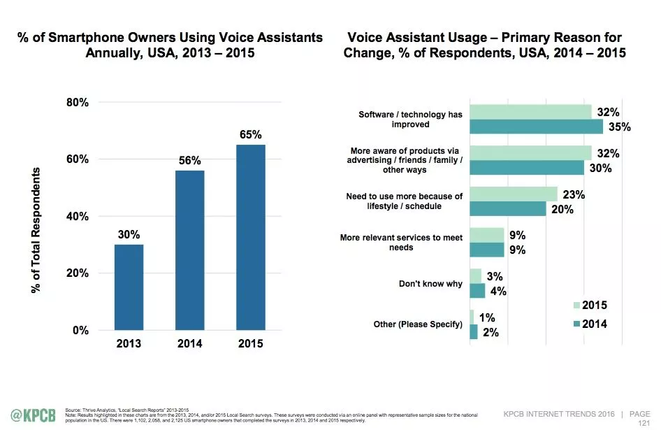 2016年のKPCBInternetTrendsレポートによると、 43%の人が自宅で音声検索を使用しています。