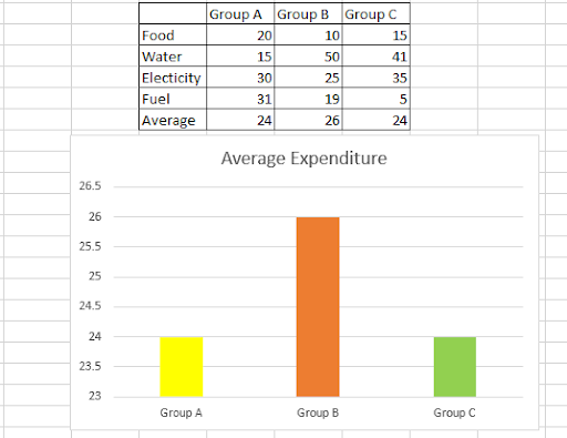 3 つのグループの人々がいて、彼らの平均支出を知りたいと考えています。グラフを使用して、誰が最も支出しているかを数秒で確認できます。