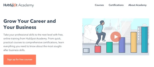 Hubspot はまた、企業の従業員がさまざまなトピックについて視聴者に教えるオンライン スクールである Hubspot Academy も提供しています。 オンライン コースを提供することで、このソフトウェア会社は業界の思想的リーダーとしての地位を確立し、コースを教える従業員のプラットフォームを構築して、ブランドに顔を向けることができます。