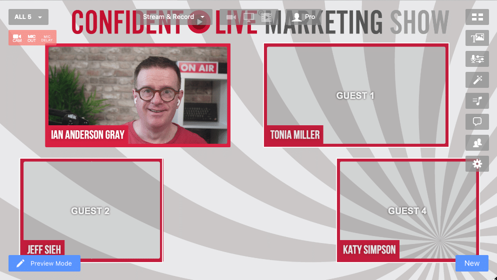 대부분의 사람들은 손님이 한 명만 있는 경향이 있습니다. 그러나 최대 10명의 게스트를 추가하면 훨씬 더 많은 유연성이 제공되며 전문가 패널이 참여하는 특별 쇼에 탁월한 옵션입니다. 이전에는 패널 쇼를 하려면 Restream Studio나 StreamYard와 같은 클라우드 기반 서비스로 전환해야 했지만 이제는 Ecamm Live를 사용할 수 있습니다.