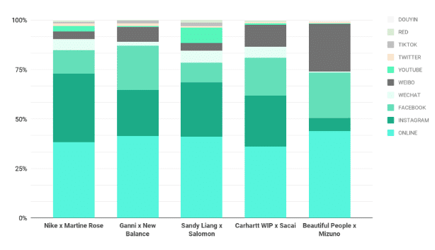 채널 측면에서는 Nike x Martine Rose 콜라보레이션과 유사점을 그릴 수 있습니다. 온라인 채널은 MIV에서 다른 채널을 능가하며 875,000달러라는 인상적인 수익을 창출하며 강자로 떠올랐습니다 . 이번 협업은 Instagram에서 광범위하게 보도되어 MIV로 491,000달러를 벌어들였습니다. 이는 청중 참여, 브랜드 인지도 및 브랜드 충성도 육성을 위한 상당한 기반으로서 소셜 미디어 플랫폼의 잠재력을 강조합니다.