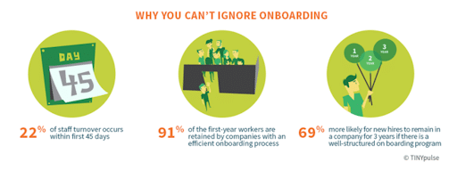 직원 만족도 측면에서 훌륭한 온보딩 프로세스는 직원을 더 행복하게 유지하고 브랜드를 더 오래 유지합니다 .