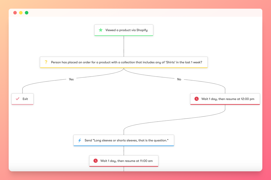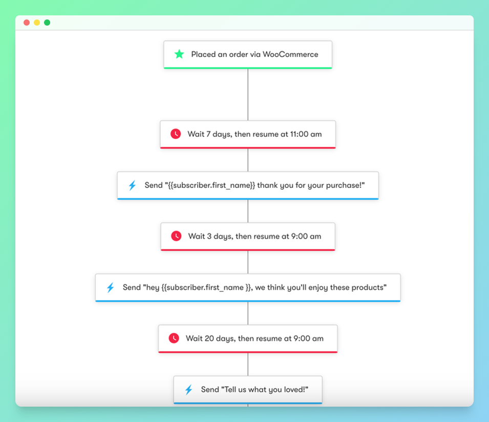 자동화 솔루션을 통해 이메일 및 SMS 워크플로 자동화를 구축할 수 있습니다. 버려진 장바구니 및 구매 후 워크플로는 판매 전환율을 높이는 데 도움이 될 수 있습니다. 또한 윈백, 생일 및 환영 캠페인은 고객 충성도 프로그램의 좋은 예입니다.