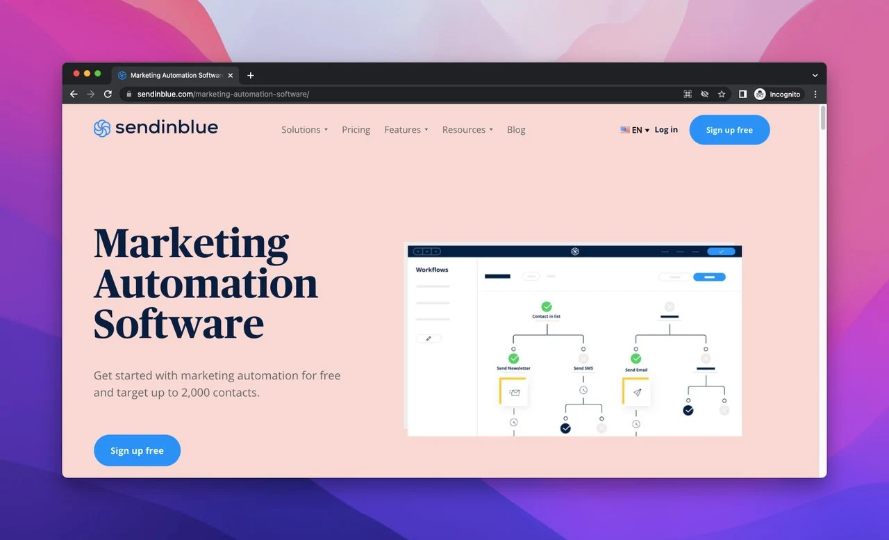 Sendinblue는 다양한 마케팅 및 판매 솔루션을 제공하는 올인원 소프트웨어입니다. 또한 사용자가 워크플로를 자동화하는 데 도움이 되는 마케팅 자동화 소프트웨어가 있습니다.