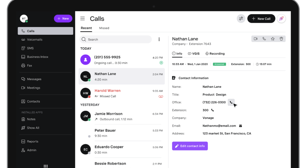 가격: 최대 100명으로 구성된 팀을 위한 Vonage의 통합 커뮤니케이션 서비스는 월 $14.99/회선부터 시작됩니다. 대규모 팀에 대한 견적을 받으려면 영업팀에 문의해야 합니다.