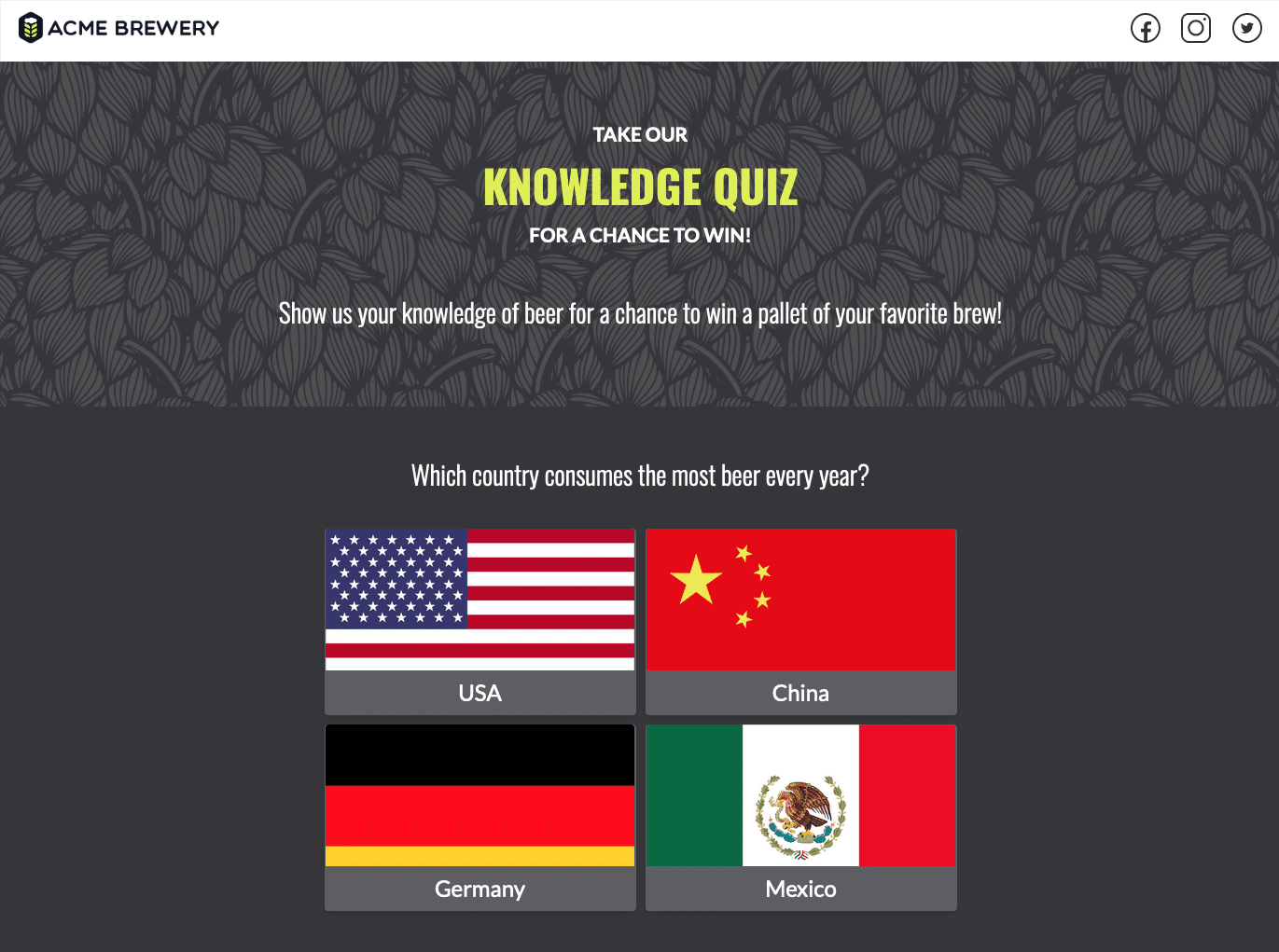 Możesz ustawić swój quiz jako informacyjny lub zabawny, jak chcesz. Edukuj ludzi na temat wszystkiego, od bezpieczeństwa żywności po techniki kulinarne, od faktów dotyczących Twojej restauracji po pochodzenie konkretnych potraw. Gdy skończą odpowiadać na pytania, poproś ludzi o przesłanie swojego adresu e-mail, aby zobaczyć wyniki, a może nawet o udział w konkursie, aby wygrać nagrodę.