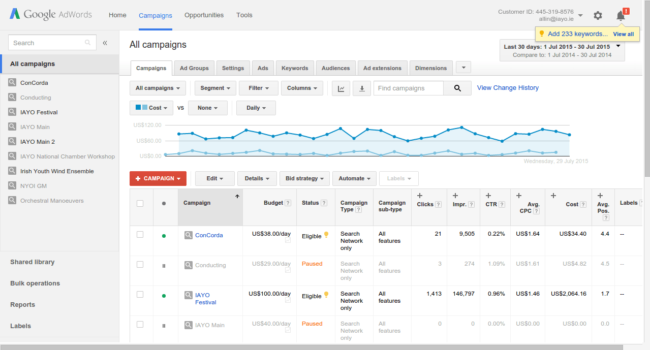 AdWords to pierwsze płatne narzędzie promocyjne, które przychodzi na myśl właścicielom małych firm. Pozwala tworzyć reklamy PPC na podstawie słów kluczowych, które są istotne dla Twojej firmy.