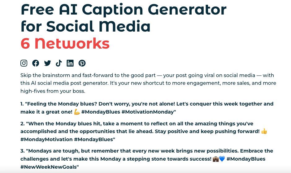 W ten sposób przyjrzyjmy się creme de la creme generatorów postów społecznościowych zasilanych sztuczną inteligencją.
