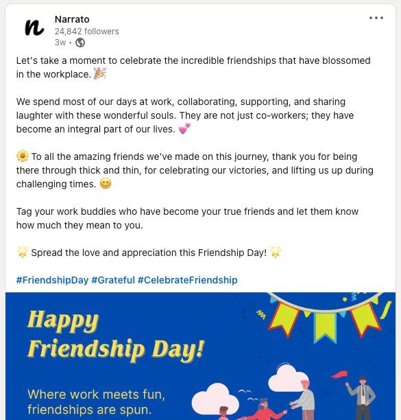 Wygenerowany przez sztuczną inteligencję post w mediach społecznościowych na kanale LinkedIn Narrato