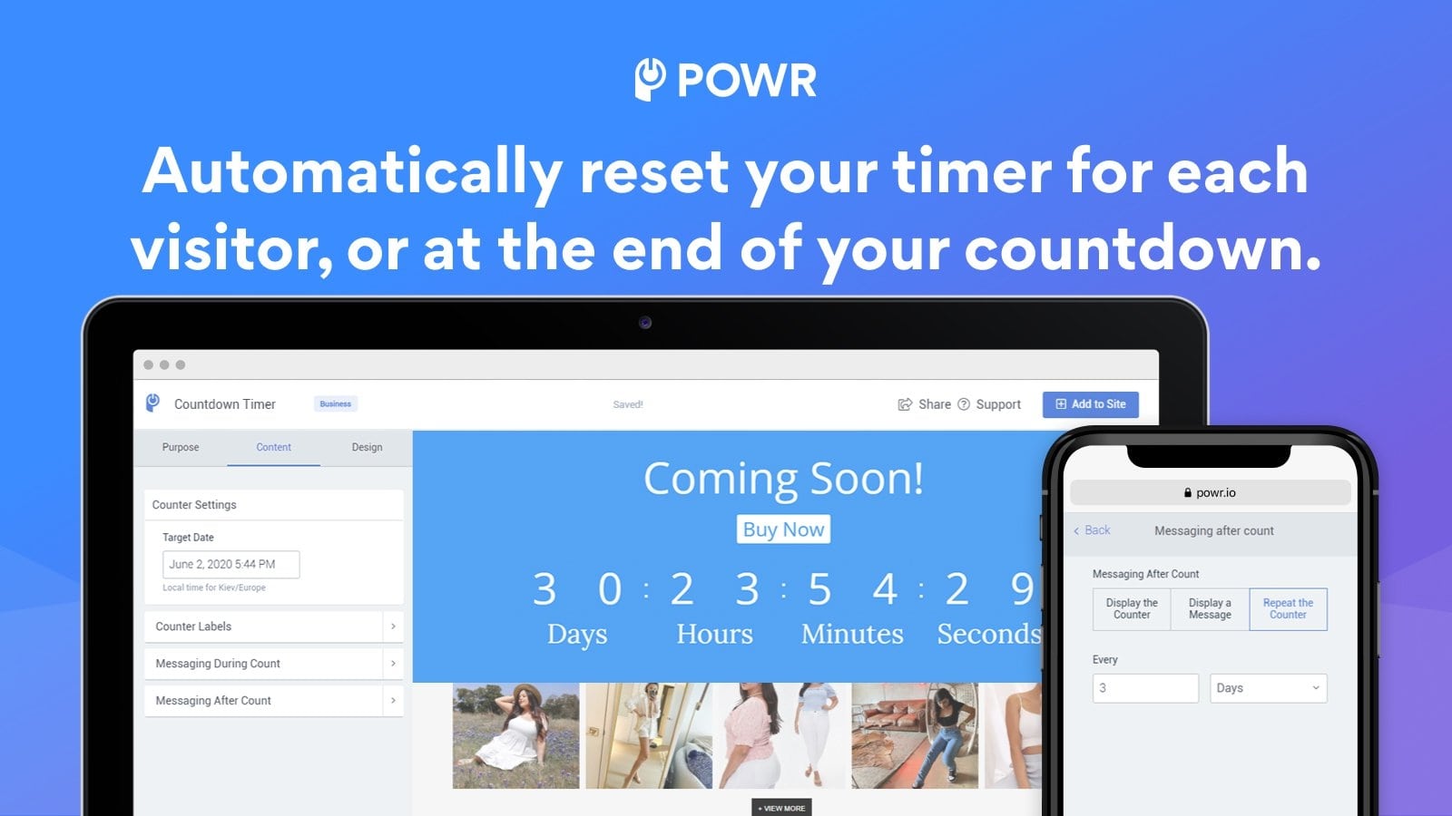 Program wykorzystuje zasady psychologii behawioralnej, która zachęca konsumentów do informowania, że wyprzedaż lub oferta kończy się po określonym czasie. Oprócz odliczania można również wykorzystać liczbę osób kupujących produkt. Szerokie możliwości dostosowywania umożliwiają również dostawcom projektowanie, kolorowanie i zmianę rozmiaru systemu odliczania.