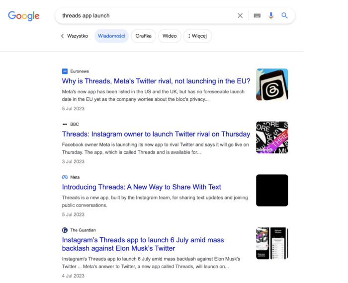 Dobrym przykładem skutecznego szumu przed premierą jest to, co Meta zrobiła z aplikacją Threads w 2023 r. Przed jej pierwszym wydaniem 5 lipca 2023 r. o aplikacji pisało już kilka głównych serwisów informacyjnych.