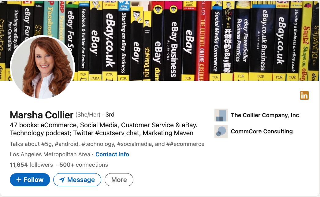 - # 12 Exemplo de biografia do LinkedIn: Marsha Collier