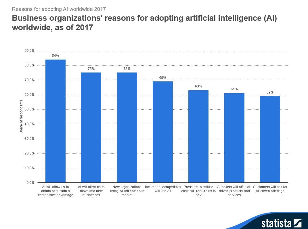Considere as seguintes estatísticas da Statista sobre os motivos pelos quais as empresas usam inteligência artificial. Como você pode ver, os chatbots vieram para ficar.