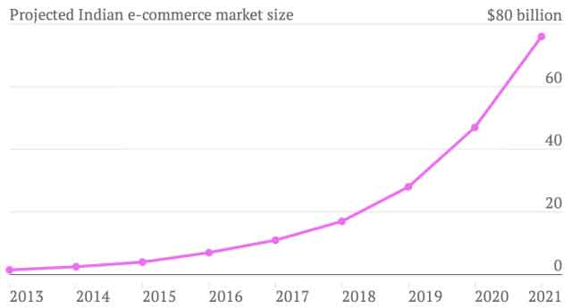De acordo com estudos recentes, a indústria de comércio eletrônico testemunhará um crescimento significativo no ano de 2017, principalmente no setor de varejo de comércio eletrônico indiano, com rápida penetração da Internet e acessibilidade de dados móveis.
