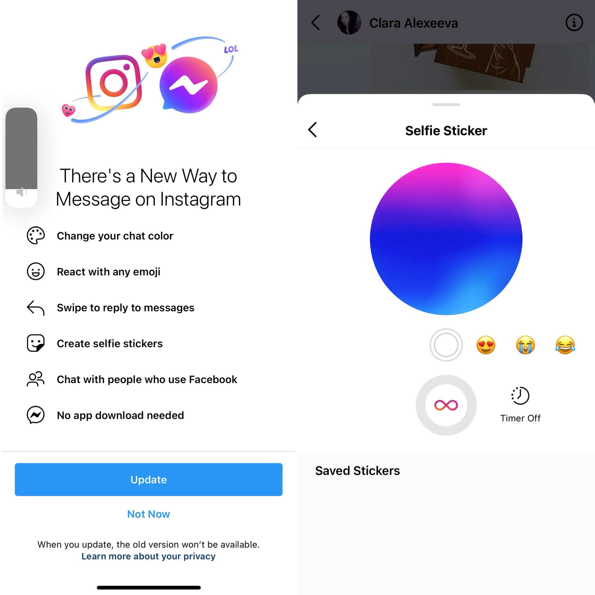 O Facebook anunciou trazer os melhores recursos do Messenger para o Instagram, conectando o aplicativo Messenger e o Instagram Direct. Esta atualização permitirá que os usuários se comuniquem entre esses dois aplicativos sem a necessidade de baixar outro aplicativo se já tiverem Instagram ou Messenger em seus smartphones.