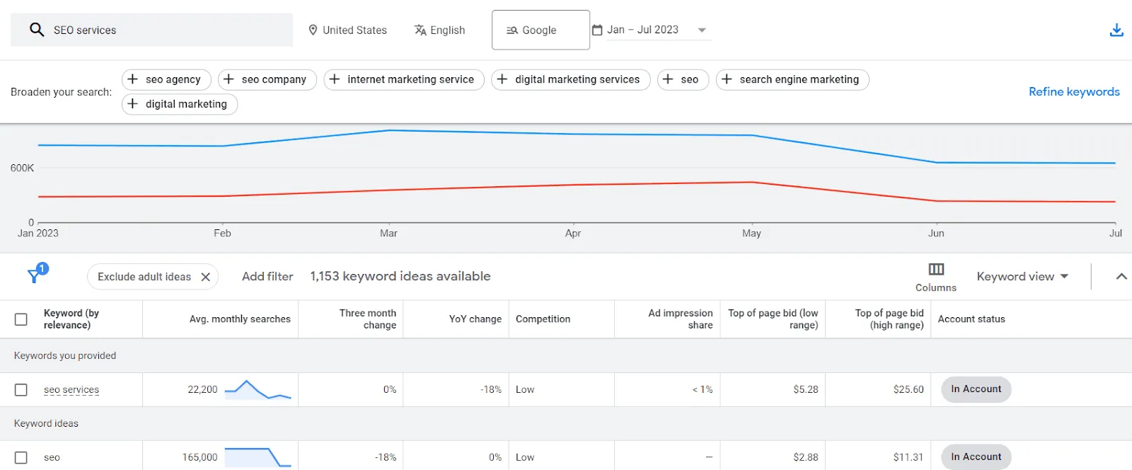 O Planejador de palavras-chave do Google Ads não é apenas para anunciantes; também é uma ferramenta útil de pesquisa de palavras-chave de SEO para sites que competem no Google.