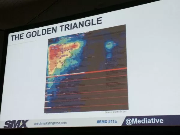 Mediative Chief Strategy Officer Gord Hotchkiss și Business Development Manager Matt Agtarap împărtășesc rezultatele studiului Google SERP 2014 de urmărire vizuală al companiei lor, în titlul potrivit „Cum văd utilizatorii și interacționează cu rezultatele căutării Google contemporane” la Search Marketing Expo (SMX) West 2015.