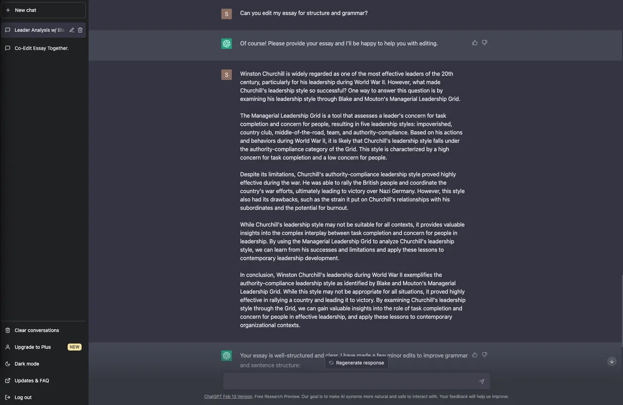 Odată ce ați terminat de scris eseul, ultimul pas este să îl revizuiți și să îl editați temeinic. În această etapă, puteți profita de expertiza ChatGPT pentru a vă ajuta. În plus, puteți indica cu exactitate ce aspecte ale eseului dvs. necesită atenție, cum ar fi structura, gramatica, fluxul sau tonul acestuia.