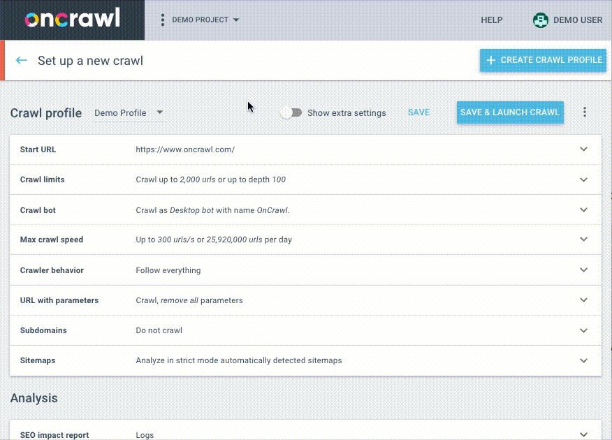 Dacă sunteți un utilizator actual al opțiunii de accesare cu crawlere JavaScript Oncrawl, puteți continua să utilizați versiunea mai veche dacă nu aveți nevoie de Core Web Vitals în analizele dvs.