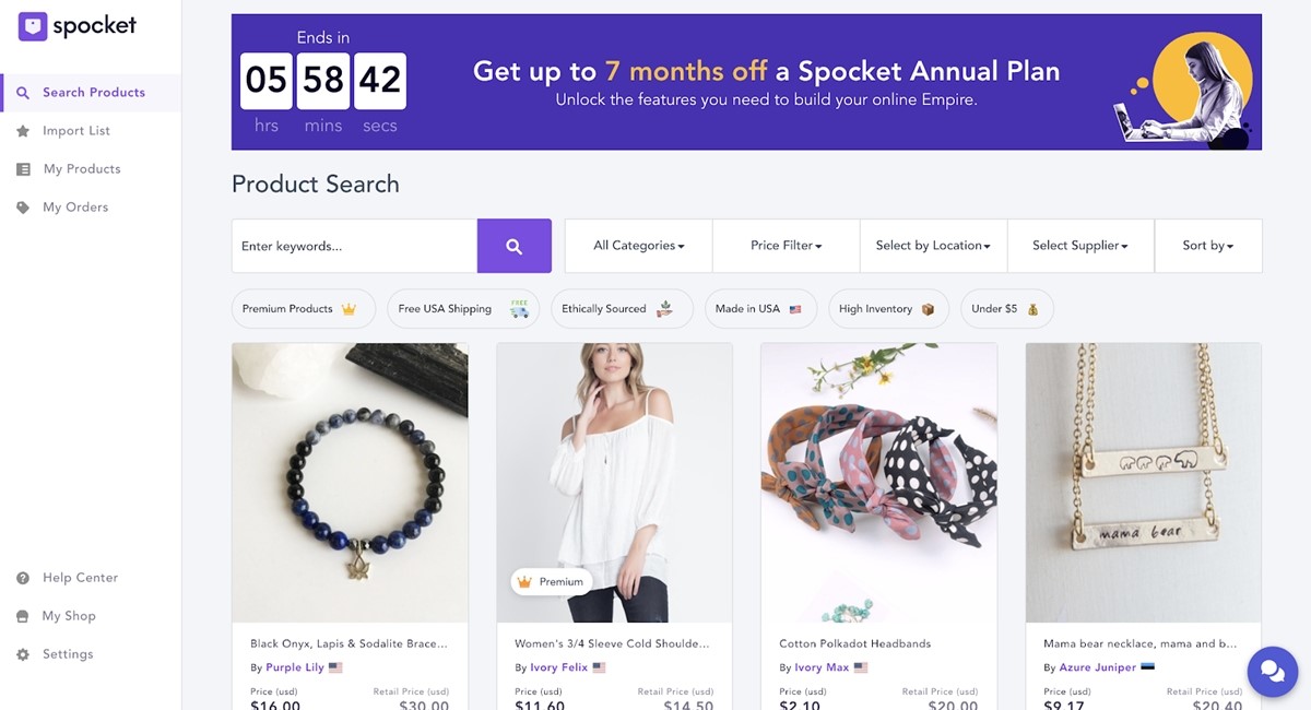 - Proces cuprinzător de verificare a furnizorilor : Spocket lucrează din greu pentru a se asigura că furnizorii de pe piața lor sunt de încredere și oferă numai produse de înaltă calitate.