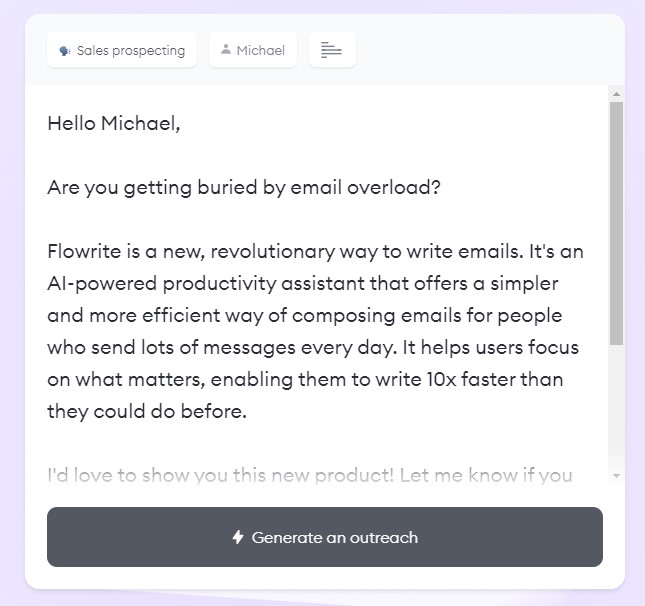Например, он проанализирует профиль лида в LinkedIn и создаст вступления и сообщения на основе школы, которую посещал человек, его местоположения или полученных им наград.
