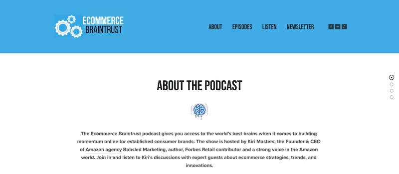 Популярный подкаст ведет Кири Мастерс и следует за ее дискуссиями с гостями-экспертами, охватывающими такие темы, как бизнес-стратегии, тенденции и более конкретные области, такие как выполнение заказов и продажи на Amazon.