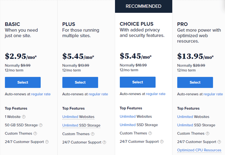 Их планы начинаются всего с 2,95 долларов в месяц , что намного дешевле, чем у GoDaddy.