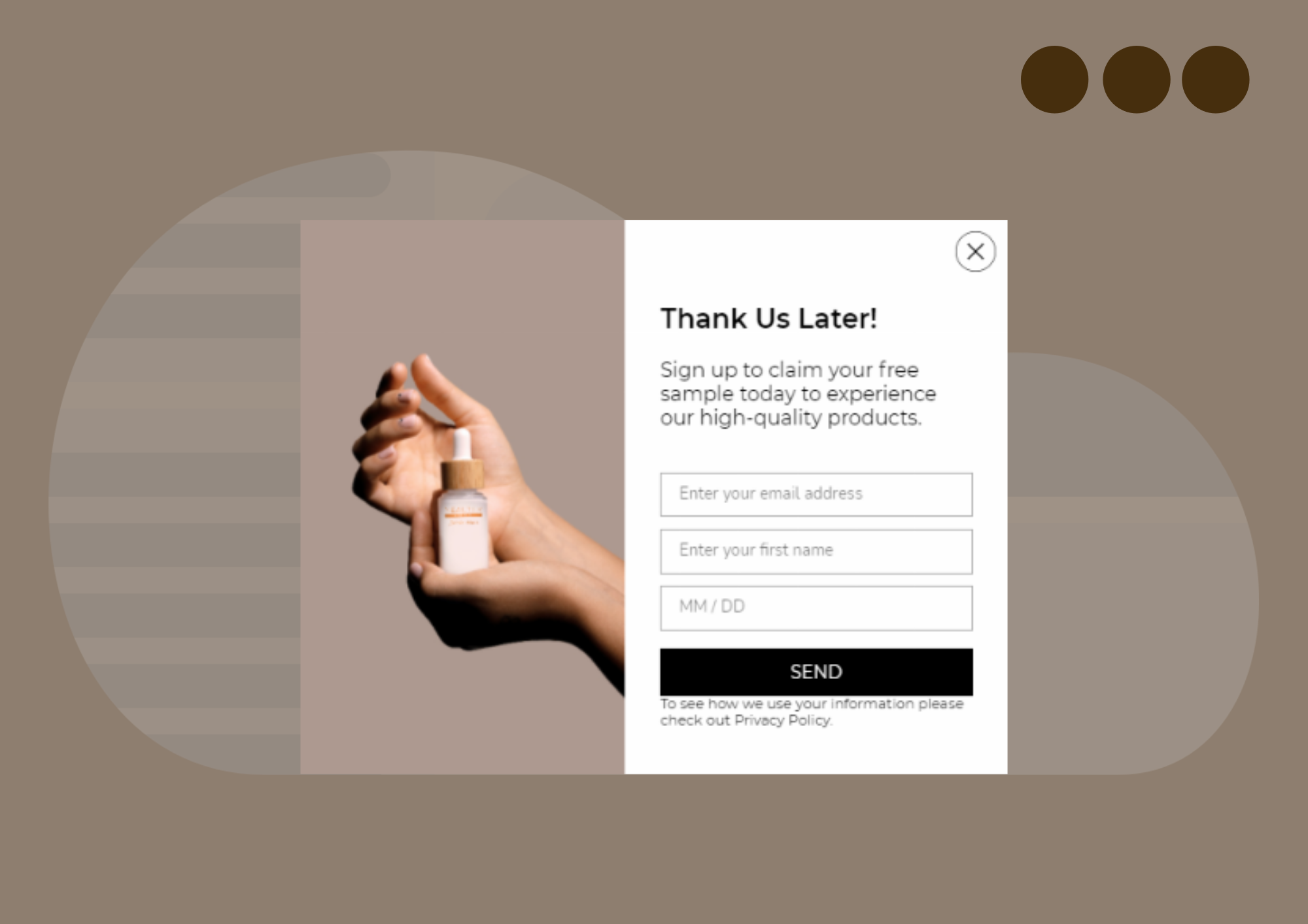 Если вы планируете использовать всплывающую форму, убедитесь, что она соответствует цветам вашего бренда и дизайну целевой страницы.
