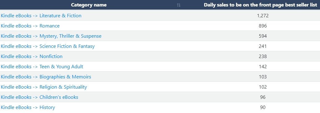 Мы также добавили для вас 10 лучших конкурентных категорий Kindle на Amazon.