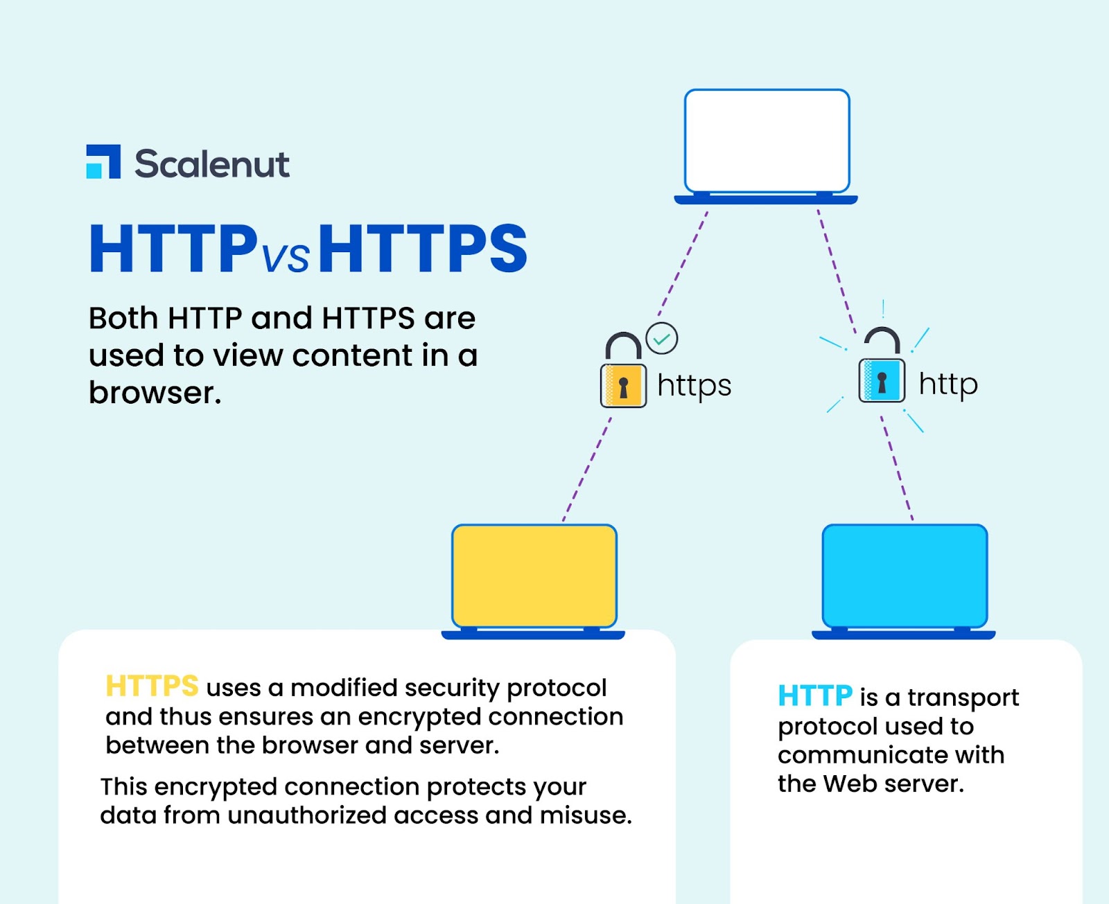 HTTP — это транспортный протокол, используемый для связи с веб-сервером. HTTPS использует другой протокол безопасности и создает зашифрованное соединение между вашим браузером и веб-сервером. Это защищает ваши данные от несанкционированного доступа сторонних лиц.