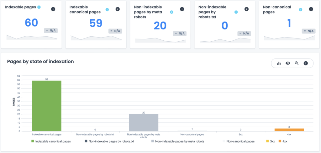 Мы также можем проверить статус индексации наших страниц с помощью анализа индексируемости Oncrawl: