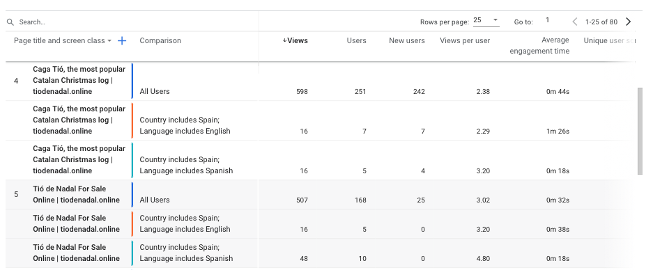 Вот почему я также установил теги hreflangs, когда был включен новый язык, потому что, хотя мы перевели контент на две версии на обоих языках, как мы можем видеть на рисунке ниже, в некоторых испанских версиях сайта в Испании, в некоторых английских страницы были приоритетными. Это произошло из-за того, что контент был очень похож на контент сайта о местных продуктах и иногда его путают поисковые системы.