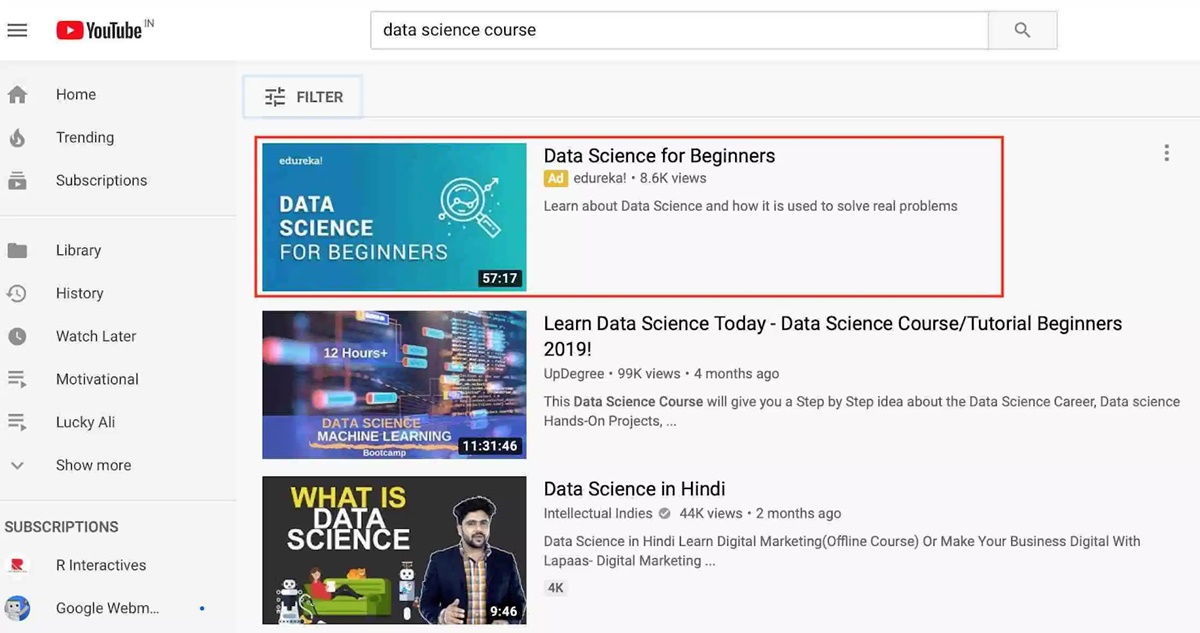 โฆษณา Discovery ทำงานควบคู่ไปกับผลการค้นหาทั่วไป และหากวิดีโอของคุณน่าสนใจมากกว่าการแสดงแบบออร์แกนิก ผู้ชมอาจเลือกดูแทน Discovery Ads ประกอบด้วยข้อความสามบรรทัดพร้อมกับภาพขนาดย่อ เมื่อมีคนอยากรู้อยากเห็นคลิกที่โฆษณา พวกเขาจะถูกส่งไปที่หน้าวิดีโอหรือช่อง YouTube ของคุณ