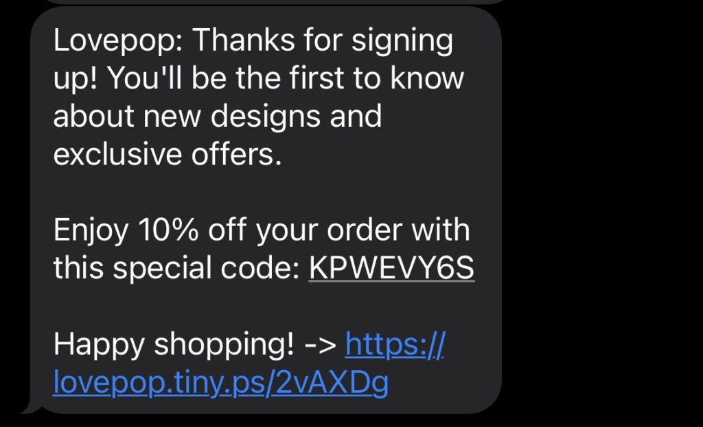 ให้เหตุผลแก่ลูกค้าในการสมัครใช้บริการ ส่งข้อความถึงพวกเขาทุกครั้งที่คุณจัดแฟลชเซลล์ ลดราคาวันหยุด หรือโปรโมชั่นอื่นๆ นี่เป็นตัวอย่างที่ดีจาก Lovepop แบรนด์ขับเคลื่อนความเร่งด่วนในขณะที่ให้ความช่วยเหลือ และสรุปรายละเอียดการขายด้วยคำกระตุ้นการตัดสินใจที่ชัดเจน