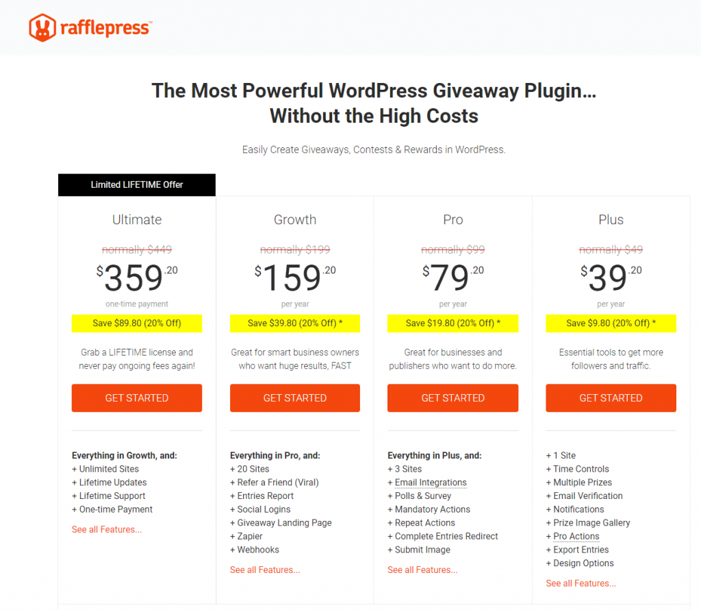 RafflePress เป็นหนึ่งในทางเลือกที่คุ้มค่าที่สุดสำหรับ Gleam ขณะนี้อยู่ในข้อเสนอตลอดชีพที่จำกัด