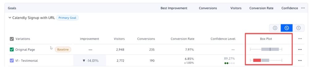 ในกล่องพล็อต ให้จับตาดูการทับซ้อนระหว่างอัตรา Conversion ดั้งเดิมและรูปแบบต่างๆ
