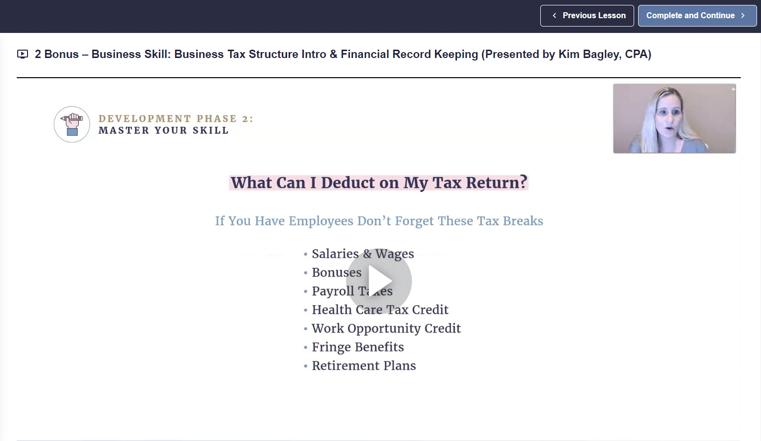 ตัวอย่างเช่น โปรแกรม Content Transformation System ของฉันมีหลักสูตรเต็มรูปแบบพร้อมผู้เชี่ยวชาญที่โดดเด่น รวมถึง CPA จริงสำหรับเคล็ดลับและคำแนะนำเกี่ยวกับโครงสร้างภาษีธุรกิจและการเก็บบันทึก
