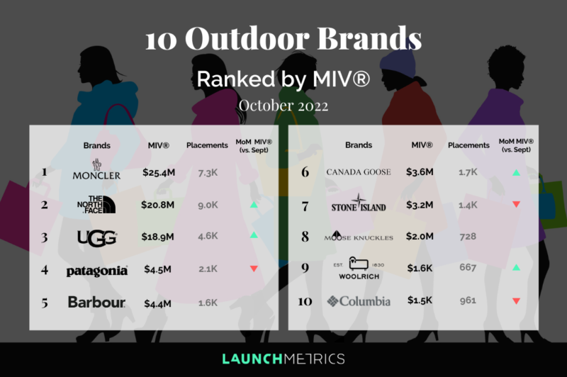 Bu rekabetçi kıyaslama raporu için, aşağıdaki on outdoor moda markası için Ekim 2022'deki MIV verilerini analiz ettik:
