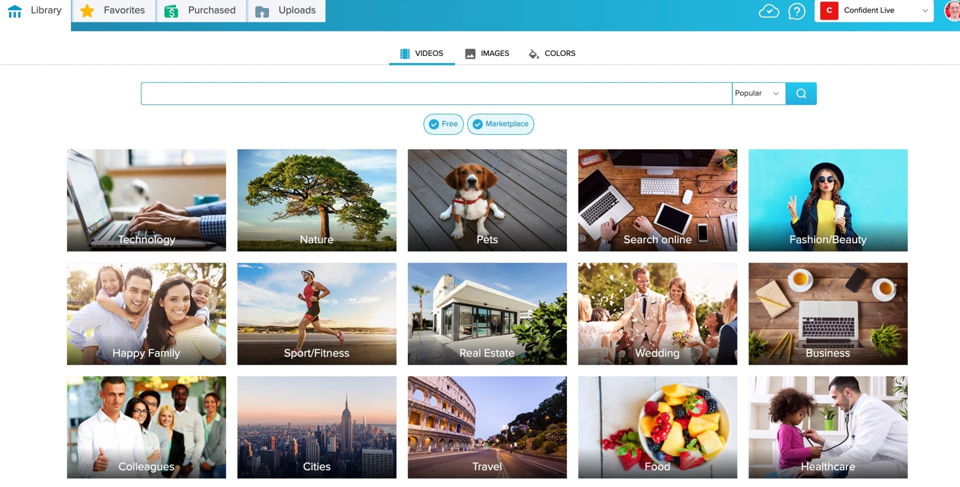 Kitaplıktan video eklemenin yanı sıra kendi video kliplerinizi de yükleyebilirsiniz. Ardından klipleri kesebilir ve şaheserinize daha fazlasını ekleyebilirsiniz. Ardından, markanızın renkleri ve yazı tipleri, harekete geçirici mesajlar, grafikler, çıkartmalar, filigranlar ve daha fazlasıyla metin ekleme durumu söz konusudur. Ayrıca müzik ve ses efektleri de ekleyebilirsiniz.