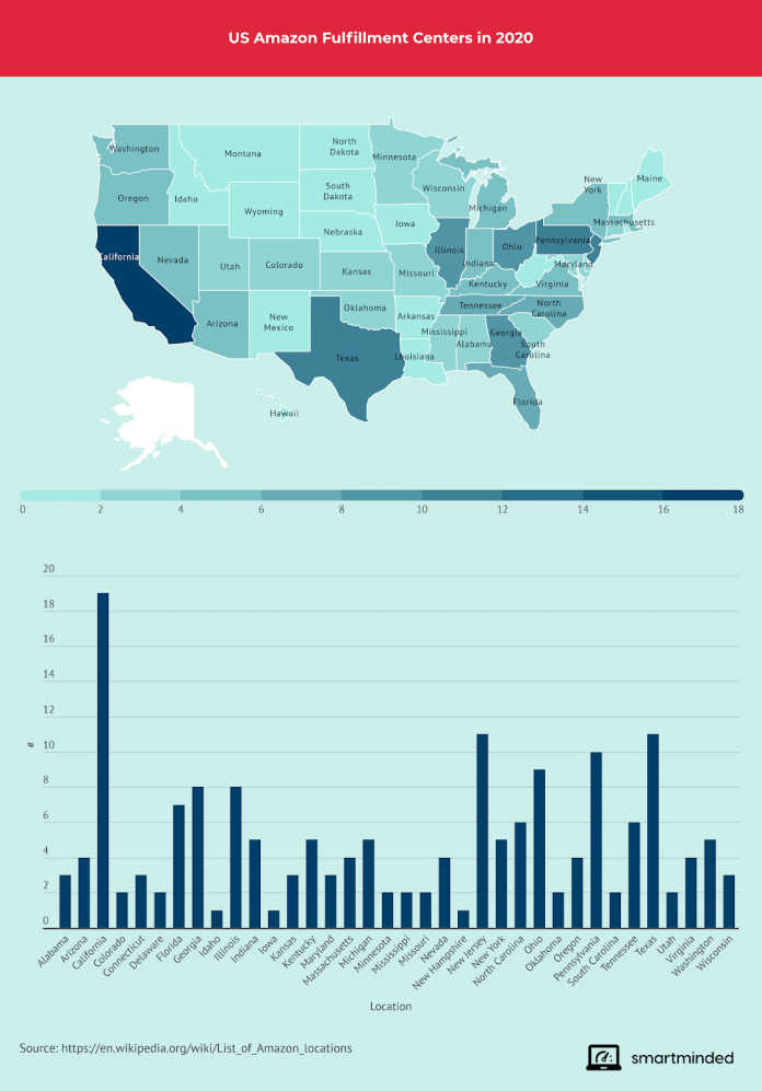 Amazon, müşterilerin nerede yaşarlarsa yaşasınlar, satın aldıkları ürünleri anında ve zamanında teslim almalarını sağlamak için ABD genelinde 11 sipariş karşılama merkezi ve dünya genelinde 185'ten fazla konum sunar.