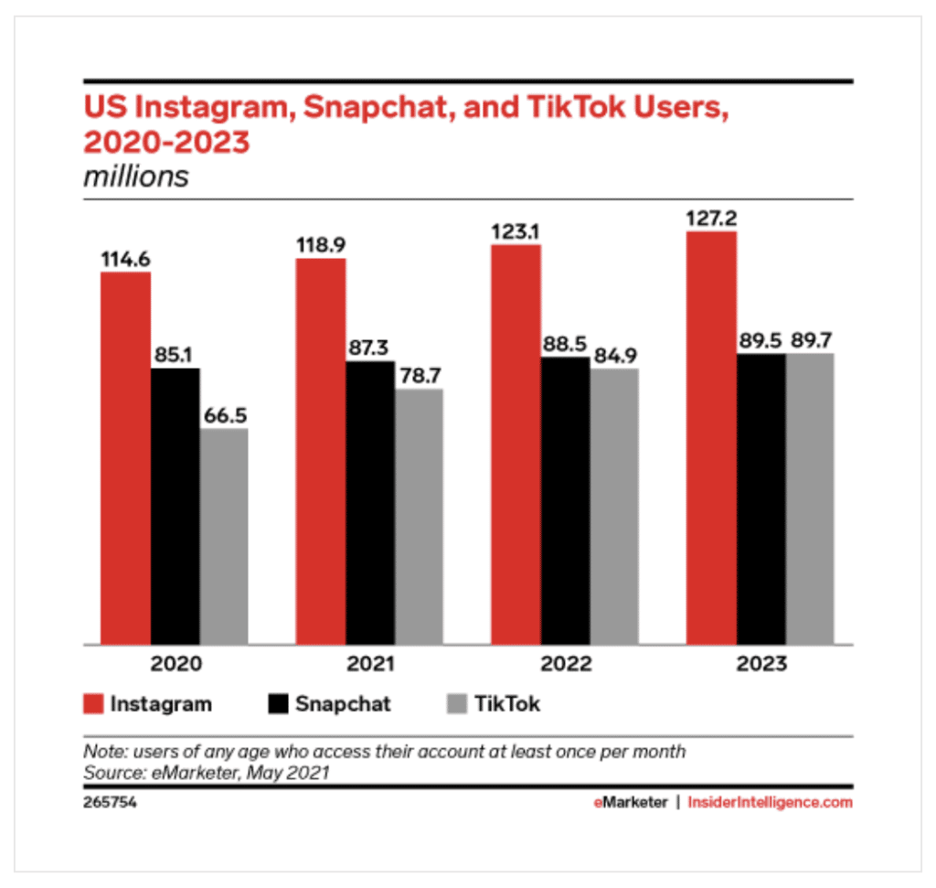 Uygulama, genç yetişkinler, özellikle Gen Z (dolayısıyla memler) arasında inanılmaz derecede popüler. Ve bu popülerliğin sadece artması bekleniyor. 2023 yılına kadar eMarketer, TikTok'un Snapchat'i toplam ABD kullanıcı sayısında (89,7 milyona karşı 89,5 milyon) geçeceğini tahmin ediyor.
